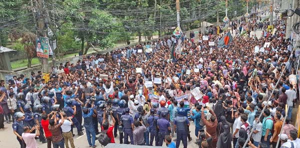 আন্দোলনকারী শিক্ষার্থীদের উপর হামলা ও হত্যার প্রতিবাদ এবং ৯ দফা দাবিতে ঢাকা-টাঙ্গাইল মহাসড়ক অবরোধ করে