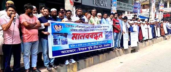 টাঙ্গাইল পৌরসভার আশেকপুর এলাকার জলবদ্ধতা দূর করে দুর্ভোগ লাঘবের দাবিতে মানববন্ধন কর্মসূচি পালন করা হয়েছে।